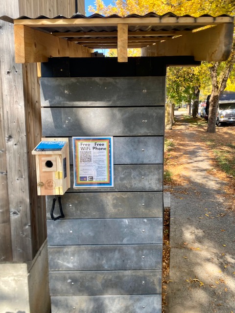 New public phone in Seattle! MLK Jr Ave S, south of Washington. Site includes a pantry, fridge, sink, and charging station.